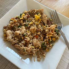 Recipe video above. A fully loaded, completely delicious Chicken Fried Rice! Serve it as a side - or have it as a main! (See here for a classic side dish Fried Rice).
