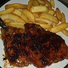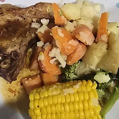 Tasty and quick pork dish, I stir fry rice and spinach in the same pan to have with the pork.