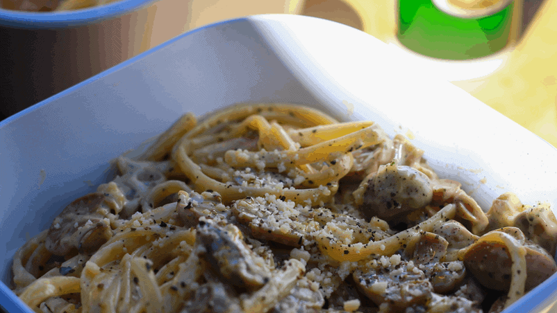 I use to make this one all the time back home, when I fancied something creamy and comforting. Here however, fresh mushrooms aren’t so easy to find, plus they aren’t cheap either. If you’re in the south at the right time of year, you may be able to get your hands on some cheap wild mushrooms in the markets. The ones you want are the impressive Loyo mushrooms, from the porcini family. For the most part, we ended up using tinned mushrooms. I won’t try and claim that these are the real thing, however they do have the advantage of being cheap, easy to find, and of course, lasting forever. By all means, use fresh if you can, but if not don’t be afraid to give these a go, you may be surprised. All the other ingredients for this recipe are also long life, so you can think about this one in the supermarket, and then forget about it till a rainy day.