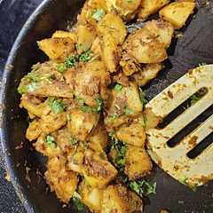 This Jeera aloo is absolutely the best!! Boiled potatoes are sauteed with cumin seeds and spice powders to make the most delicious potatoes. Serve it with rice, roti or as a side.