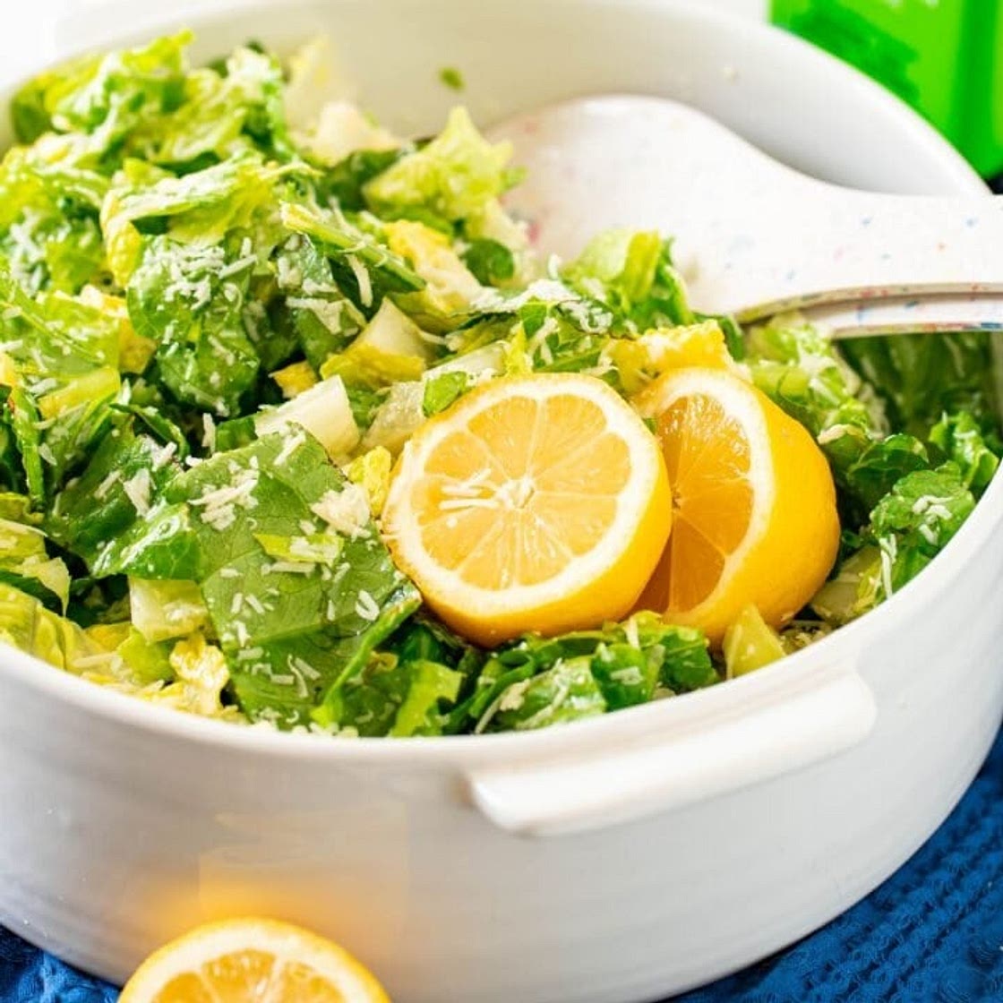 Crunchy lemon salad with parmesan that is light, flavorful, and perfect with chicken, fish, or vegetables!