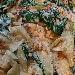 Creamy Tuscan Salmon with Spinach, Artichokes, and Garlic