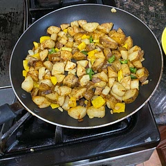 Home-style fried potatoes. Simply boil potatoes before frying with onion and pepper for an easy way to get crispy yet fluffy and flavorful results.