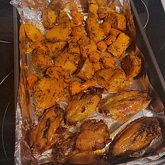 These oven-roasted sweet potatoes and carrots are paired with sweet and savoury flavours, like maple syrup, cinnamon, rosemary, and thyme. Recipe requires only 15 minutes of active time - the rest is in the oven!