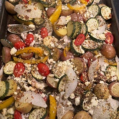 I had some green grape tomatoes, so used them and red pepper instead of yellow. Very tasty and easy.