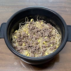 쌀은 깨끗이 씻어 채반에 밭쳐 물기를 제거하여 준비해 주세요. 소고기는 1.5cmX1.5cm로 썰어서 밑간하여 준비해주세요. 콩나물은 씻어서 채반에 밭쳐 물기를 제거해주세요. 양념장 재료는 모두 섞어서 준비해주세요.
