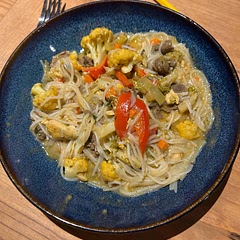 Retirer du feu ; incorporer les oignons verts, la coriandre, le basilic et le jus de citron vert ; assaisonner de sel et de poivre, au goût.