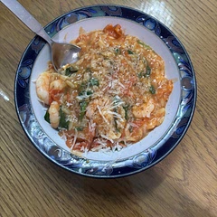 Stir fry your shrimps in a medium-high heat skillet until they turn pink and they're just cooked. Don't overcook them, they will go back in later. Take them out and squeeze fresh lemon juice on top to rest.
