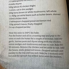 Garlic harissa chicken, mushroom & bean bake - cuisine 218, p40