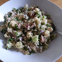 4. Pressez le citron. Versez le jus avec la pulpe sur le taboulé. Mélangez le tout.