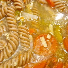 Nudelsuppe mit Tofu (oder Jackfrucht)