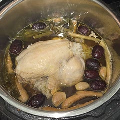 A nourishing blend of tender chicken, ginseng, garlic, and jujubes, slow-cooked to create a rich, aromatic broth with a delicate, earthy sweetness.