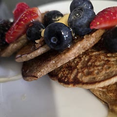 On medium heat, pour mixture into a buttered pan. Once bubbles start to appear on one side, flip the pancakes.