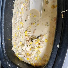 Remove chicken to large mixing bowl, shred, then return to slow cooker.