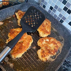 In a large skillet, heat enough oil to cover the bottom of a skillet. Once hot, add the chicken and cook 4-5 minutes per side, or until crispy, golden and cooked through to 165˚F on an Instant Read Thermometer. Reduce the heat if chicken browns too quickly.
