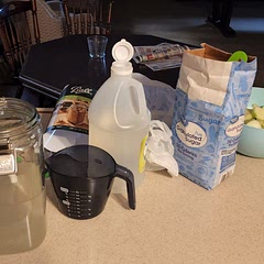 Combine Water, White Vinegar and Sugar into a glass jar - Half Gallon Latching Glass Jar