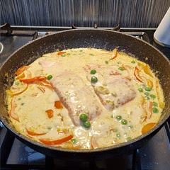 Red snapper, snow peas in coconut curry broth