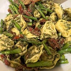 Pesto Pasta with Sun Dried Tomatoes and Roasted Asparagus
