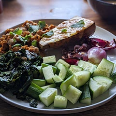 I changed sweet potatoes for red potatoes (as my partner doesn't like sweet potatoes) cooked exactly the same way and tasted amazing. My partner first groaned there was no meat but he really really liked it!