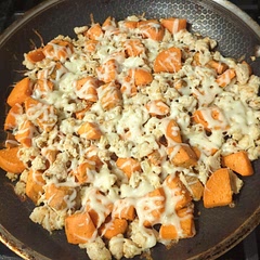 When the sweet potatoes are tender, add the shredded mozzarella cheese, and cover to melt the cheese. Serve and Enjoy!