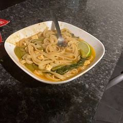 Super simple tofu noodle Thai curry soup! Gluten free, vegan, and nut free!