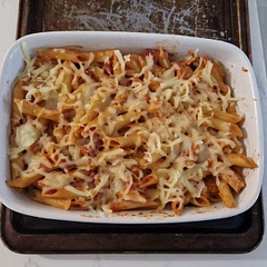 9. Bake the pasta in the oven for 20-30 minutes until golden brown and bubbling.