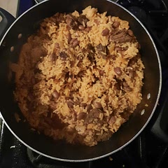2. Saute onions, steak? , leftovers?, beans, all seasonings