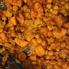 Curry de patate douce carotte et épinards aux pois chiches