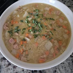 You can blend your soup until totally smooth or leave it a little chunky. After blending add in the ham hough.
