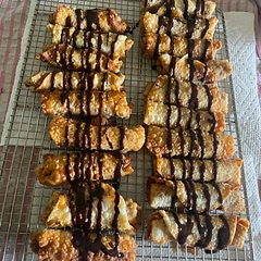 Now drizzle your eggrolls with Caramel and White Chocolate And Enjoy!!!!