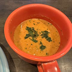 Add the tomatoes, onion and squeeze out the roasted garlic into the pot. Stir and add vegetable broth, heavy cream, fresh basil, balsamic vinegar and sugar.
